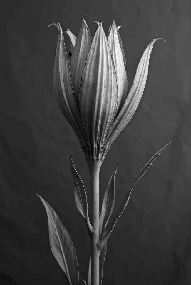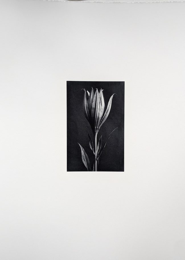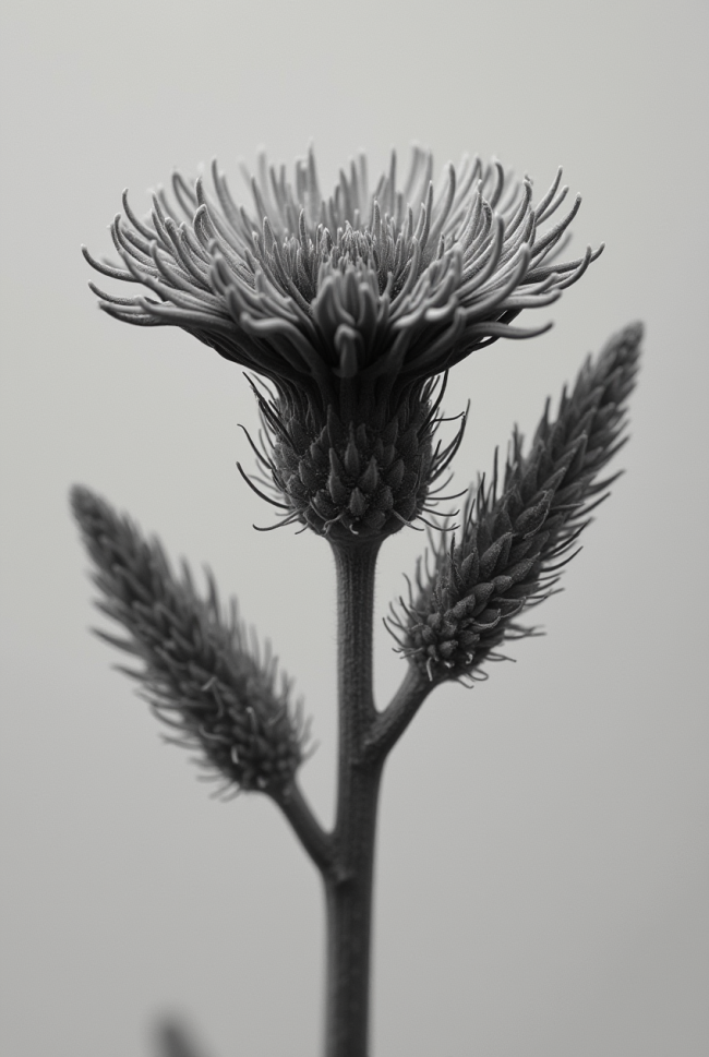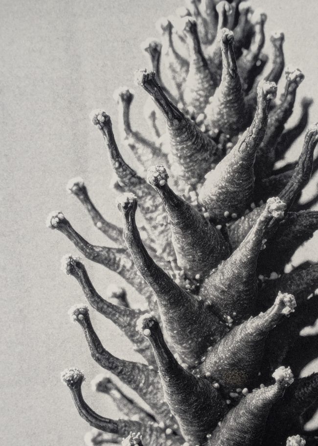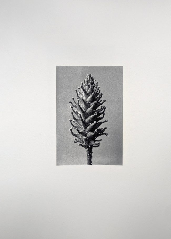 Des spécimens inventés par une IA inspirée de Blossfeldt prennent corps en palladium, qui leur confère l’aura de l’archive.